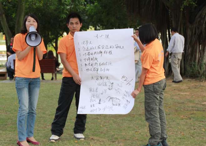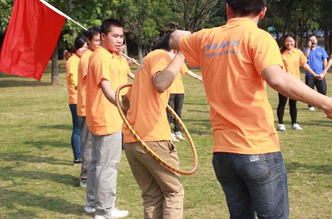 戶外拓展活動開始了!先是由我們總經(jīng)理致詞,講述活動的游戲規(guī)則,分成若干組進(jìn)行比賽。我們的比賽項目有:“拔河比賽”、“同心協(xié)力”、“轉(zhuǎn)呼啦圈致力”、“盲人踢球”等等,活動勝出的組,還有豐富的獎金及禮品。