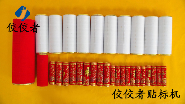我們?nèi)粘I钪锌赡芤惨娺^一些小圓筒上面緊緊地包裹著一層標簽,最常見的就是很多裝飾用的非常漂亮的紅色鞭炮筒,便是用熱熔膠紙筒貼標機(又稱熱熔膠貼標機)貼上的標簽,如下圖: