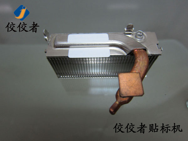 因?yàn)檫@款產(chǎn)品需要貼兩張標(biāo)簽。那么我們首先在散熱器上面貼上一張標(biāo)簽。當(dāng)我們貼好一張標(biāo)簽之后,再貼另外一張標(biāo)簽的時(shí)候,我們需要再一次調(diào)整模具的位置來實(shí)現(xiàn)另外一張標(biāo)簽的貼標(biāo)。所以我們建議客戶在同一個(gè)產(chǎn)品上面貼兩張標(biāo)簽的時(shí)候,盡力做到一張一張的批量貼標(biāo)。這樣可以有效增加生產(chǎn)率。