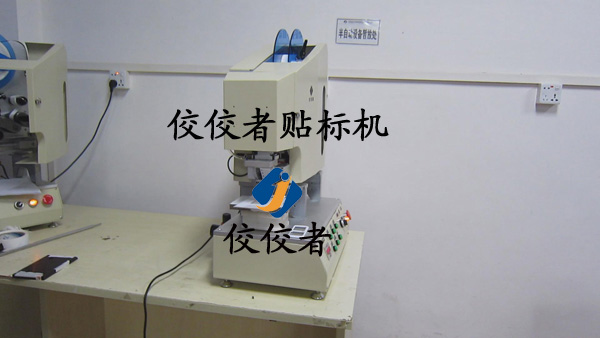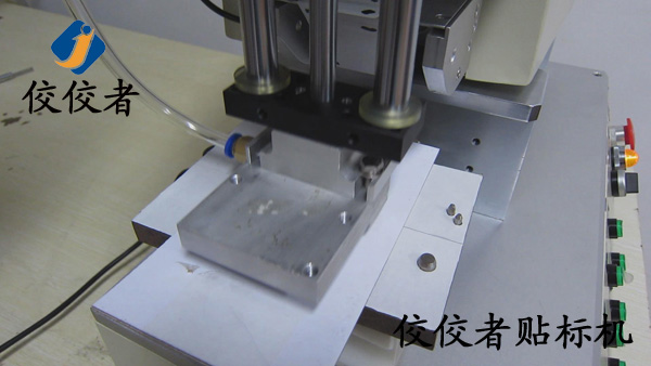 正常操作的時候工作人員將需要貼標的手機殼放在方便拿取的位置以增加貼標的效率,此時有一個步驟在圖片中沒有展示出來,那就是接通電源之后,需要做的就是將手機殼放在治具(固定產品用的模具,可根據產品的不同進行定制)中.然后踩腳踏,此時貼標過程已經完成.看似只有一秒鐘的時間,在這個時間中,機器進行了一系列的工作.吸標頭向下垂直運動到指定位置,標簽剝離機構同時出標,當標簽出到1/2處時,吸氣裝置啟動,吸住標簽,待標簽完全剝離,標簽也完全被吸在貼標頭上了,此時貼標頭向下貼標,到指定位置,這里說的就是產品放置的位置了.至此,貼標過程就已經完成了。(操作過程:放產品—>貼標并覆標(設備自動實現(xiàn))—>取出已貼標產品。)如下圖: