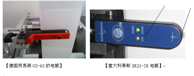 工作原理:屬于槽型電眼,通過穿透光量的強弱判別有無標簽,適用于底紙材質(zhì)和標簽材質(zhì)不同的標簽。