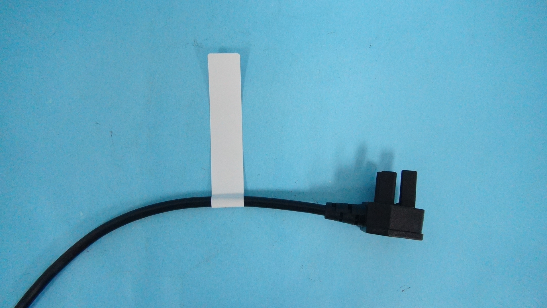 上圖:樣品四.上圖中的這個(gè)圖片是在研發(fā)過程中,對(duì)二角插頭進(jìn)行貼標(biāo)的樣品圖片.