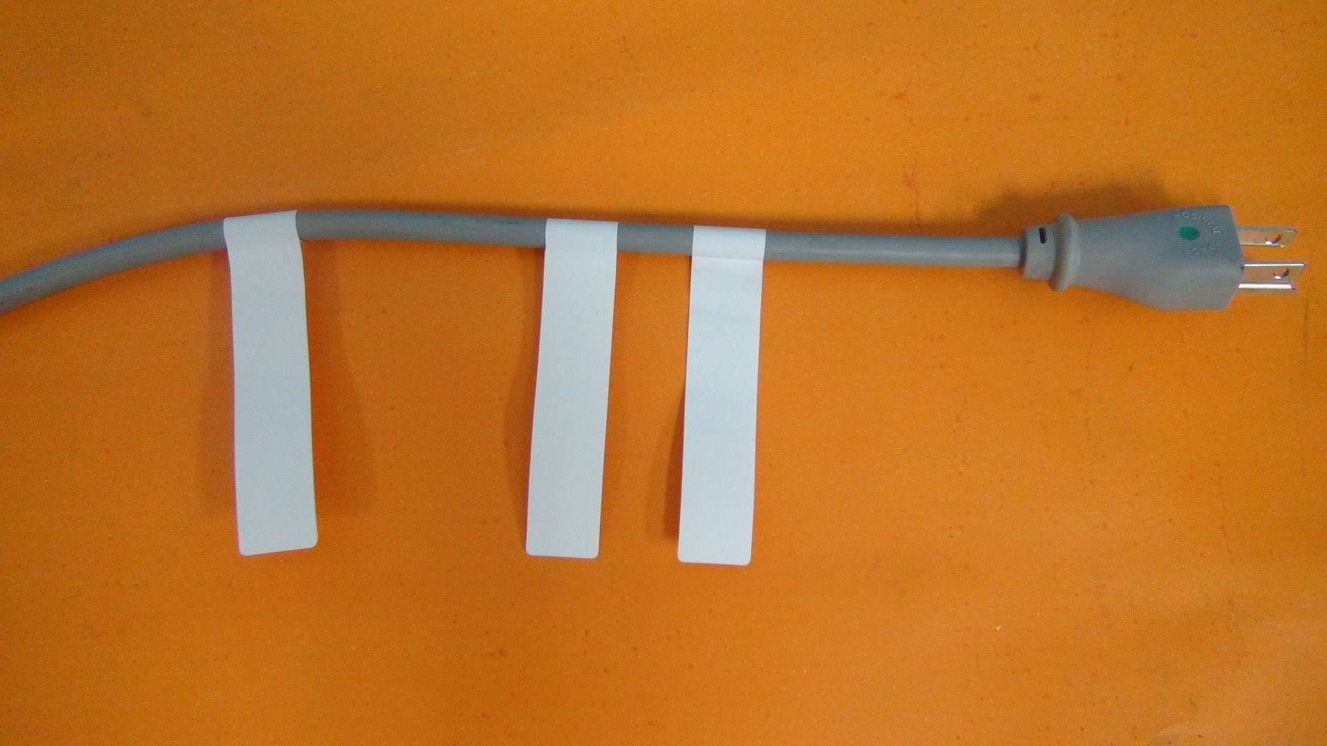 上圖:樣品五.上圖中的這個(gè)圖片是在研發(fā)過程中,對(duì)三角插頭和二角插頭以及鋁電線進(jìn)行貼標(biāo)的樣品集合拍攝的圖片.