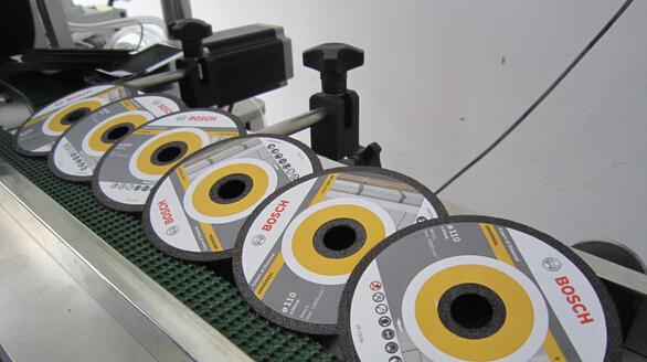 上圖的這個產(chǎn)品是我公司貼標(biāo)機(jī)系列下專用貼標(biāo)機(jī)系列下的全自動砂輪片專用貼標(biāo)機(jī)對砂輪片進(jìn)行貼標(biāo)的樣品圖片.這張圖片是在產(chǎn)品上面時行拍攝的.背景中的設(shè)備便是我公司的全自動砂輪片專用貼標(biāo)機(jī)了.