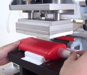 此外,若客戶產量不大,可以采用半自動貼標機進行貼標,這時需要一個面貼好再貼另外一面。針對產量不是很大的客戶是非常適合的,在滿足改善生產質量的同時節(jié)約投入成本。如下圖: