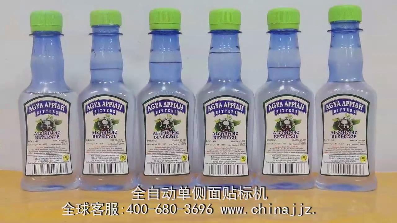全自動(dòng)單側(cè)面貼標(biāo)機(jī)實(shí)例樣品_貼塑料瓶_佼佼者